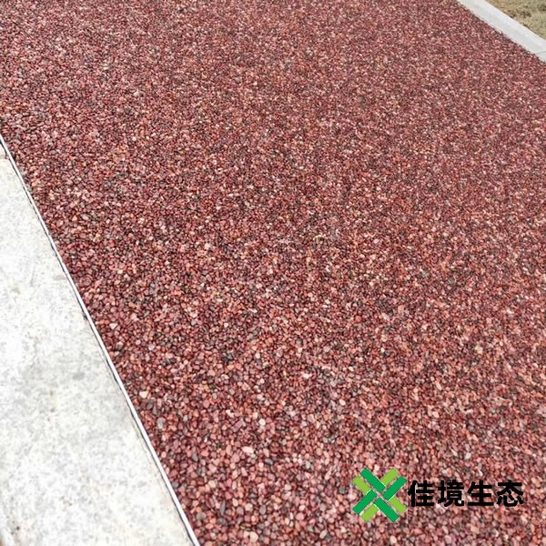 其特點是運用天然石頭自身的色彩、形狀以及長期潤濕的光澤效果,使面層骨料實現自然的非人工雕琢的自然鋪面效果。