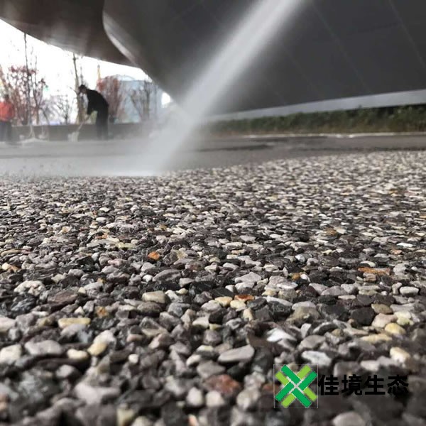 露骨料透水混凝土需要噴灑緩凝劑,過一段時間后,還需要用高壓水槍把面層的水泥漿沖洗干凈,露出石子本身的顏色。